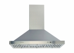 Makes a statment of strength and power as the stainless steel frame gleams under your kitchen lights. It features BAFFLE filters, tow birght halogen lights in each corner, a three speed control panel, and a quiet, powerful motor. The bold design and strong stainless steel frame encasing the fan will make this machine the focus of your kitchen. Fitted with time-delay "OFF" options up to nine minutes.