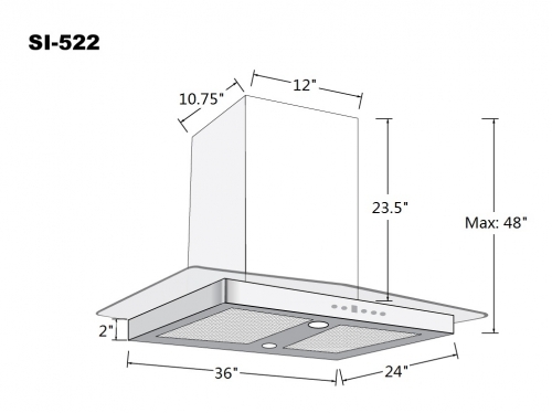 This fan embodies the qualities and characteristics that will distinguish it and its predecessors from the competition. This handsome, tasteful hood is a wonderful complement to modern, upscale home décor. Features button controlled halogen lights and has a digital three-speed control panel on the front. An attractive glass canopy broadly frames the mesh filters and blocks smoke and grease from staining the vent shaft. Quiet and extremely powerful the fan can draw air out of your kitchen with minimal sound. Fitted with time-delay off options up to nine minutes.