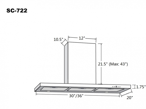 Designed with an emphasis on the beauty of simplicity, the straightforward design of this model blends seamlessly with a modern kitchen environment. Features 550 CFM of drawing power, halogen lights at the back of the machine, and a time-delay off function up to nine minutes.